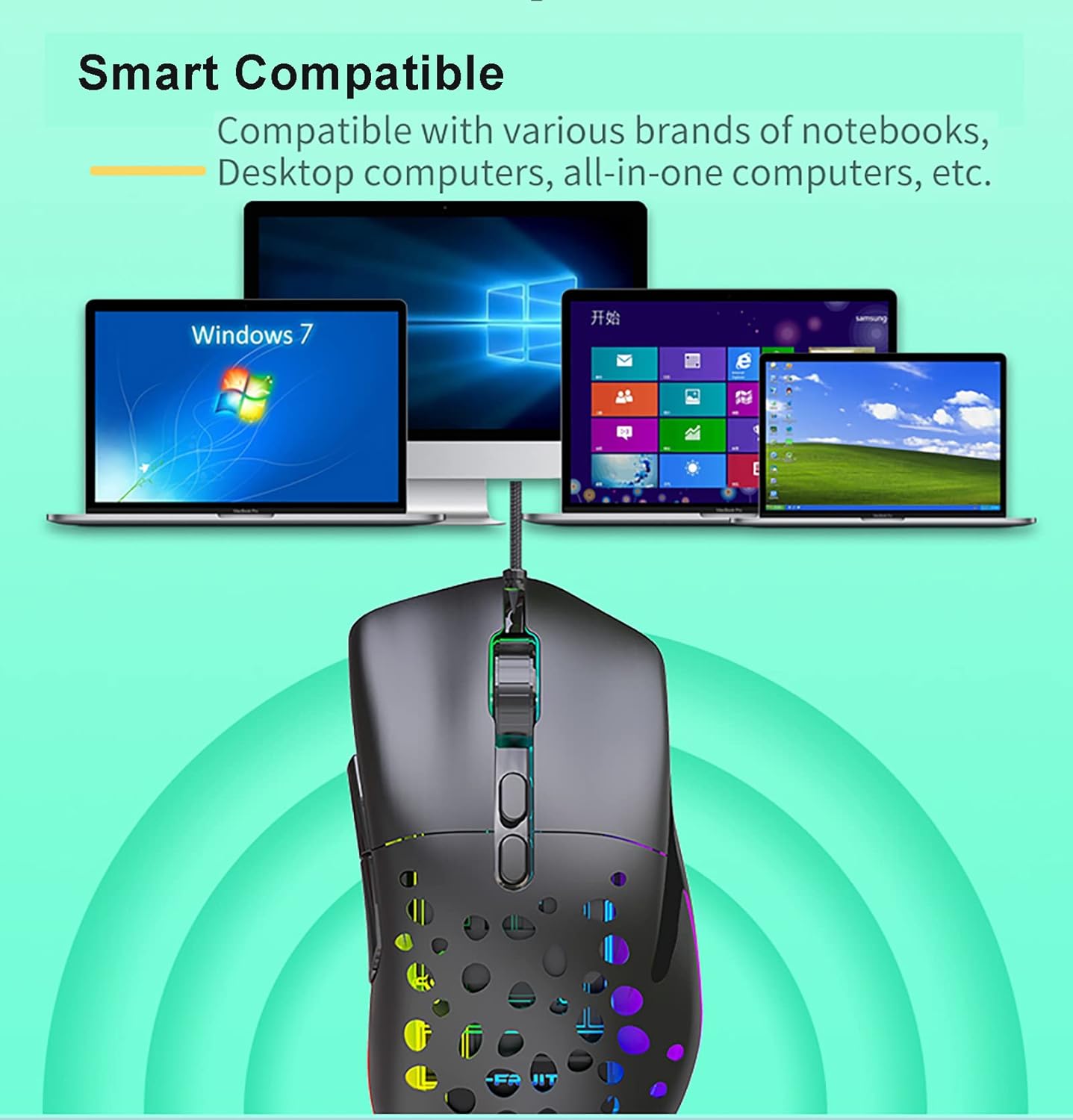 Plug and play and wide compatibility: The pc gaming mice with 1.8 meters wired transmission, plug and play, no driver required. Compatible with windows 98/2000/ME/NT/VISTA/7/8/10/11/MAC OS for various brands of notebooks,desktop computers, all -in one computers,etc.