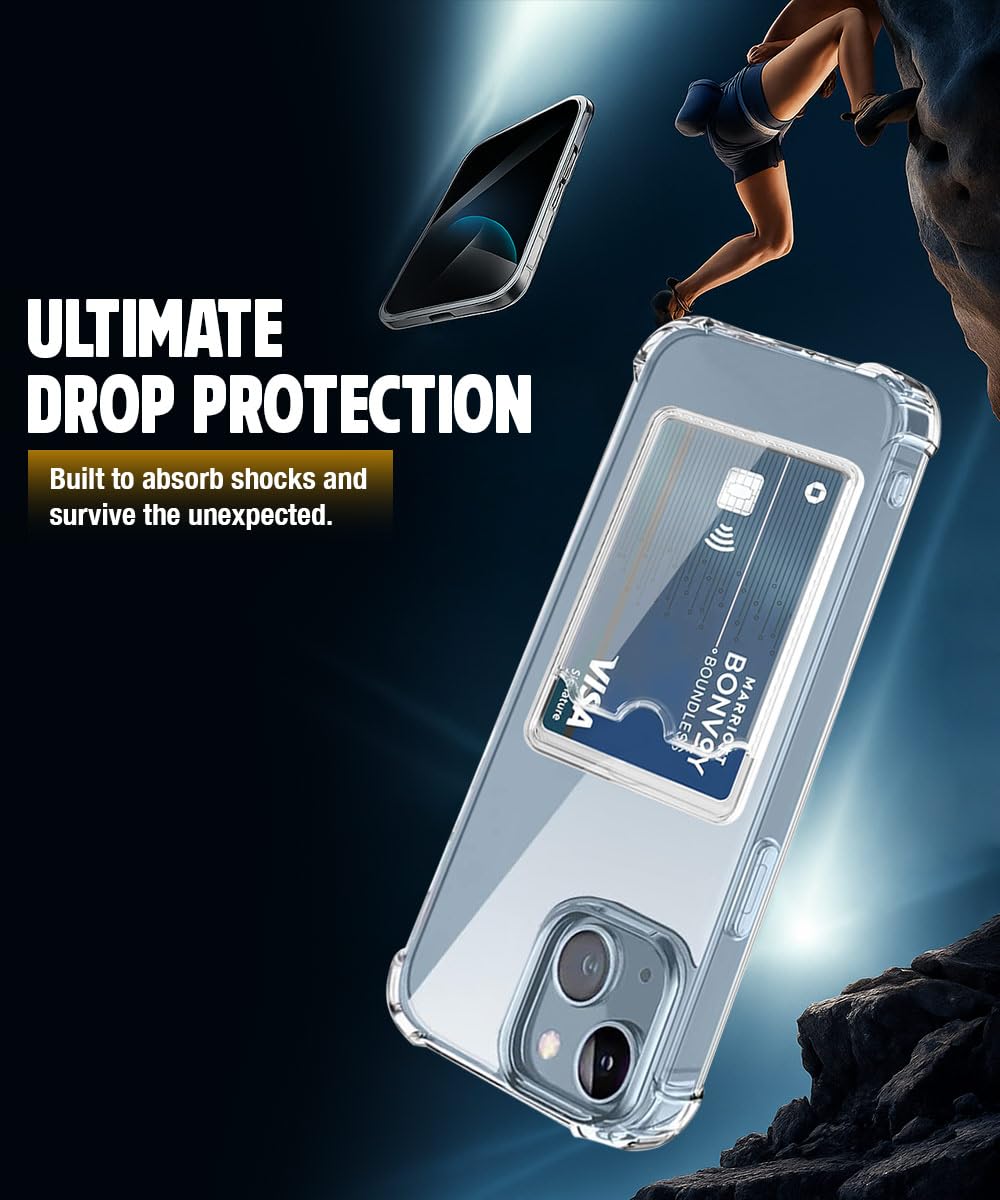 WOW IMAGINE Transparent Back Cover Case for iPhone 13 | Flexible Built-in Slim Card Pockets Wallet | 360° Camera Protection TPU | Soft Silicone Mobile Cover – Transparent