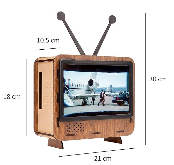 Charming vintage TV design. Made with virgine 4mm Pine MDF, Both Side Pre Laminated 3.5mm Wooden MDF, Magnifier Glass with Plastic Panel
