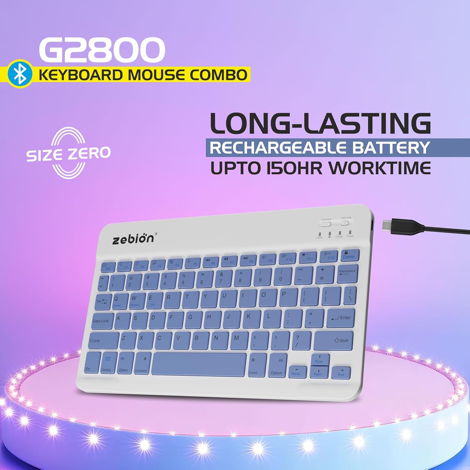 WIRELESS COMBO: Slim Bluetooth keyboard and mouse set featuring a minimalist design in white and Purple colour scheme