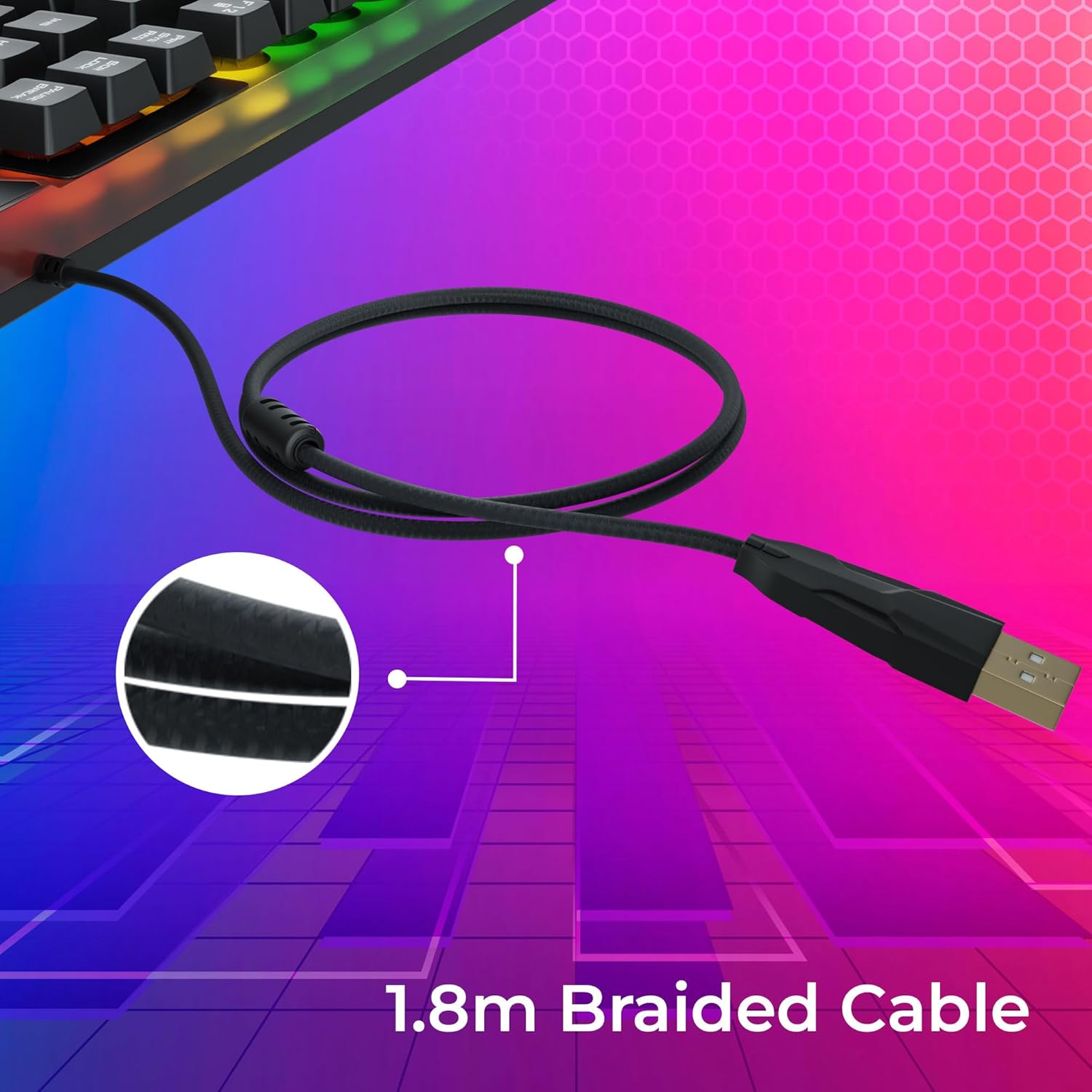 Zebronics War-K Gaming Keyboard with 104 Keys,Multi Color LED,1.8m Braided Cable, Gold Plated USB,Laser Keycaps, Anti-Ghosting 19 Keys,2 Step Stand,12 Integrated Multimedia Keys (Black)